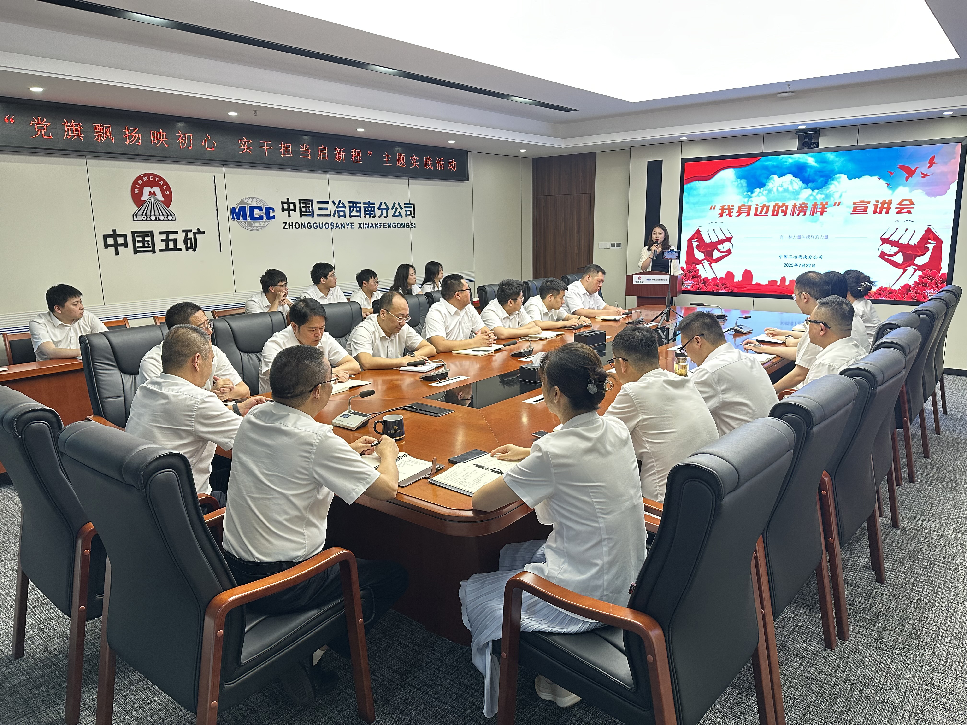 7月22日,中國三冶黨委委員、副總經理李貴文通過網絡為西南公司全體黨員講授題為“以學鑄魂強作風 真查實改樹新風”的專題黨課,并參加“我身邊的榜樣”主題宣講會。